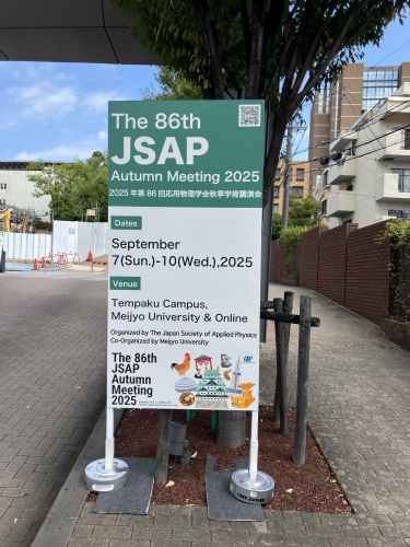 9月7日から10日まで名城大学(愛知県名古屋市)で開催された第86回応用物理学会秋季学術講演会にて、4件の発表を行いました。