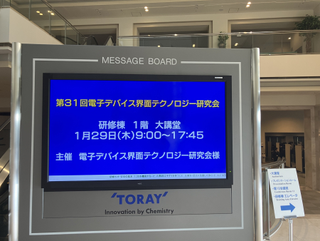 2026年1月29日から1月30日まで東レ総合研修センター(静岡県三島市)で開催された「第31回電子デバイス界面テクノロジー研究会」にて、2件の発表を行いました。